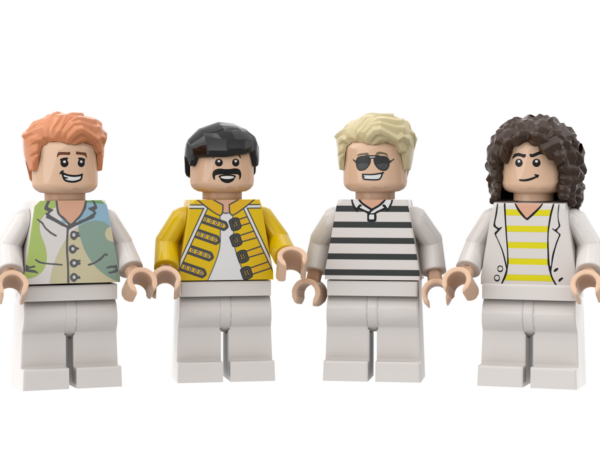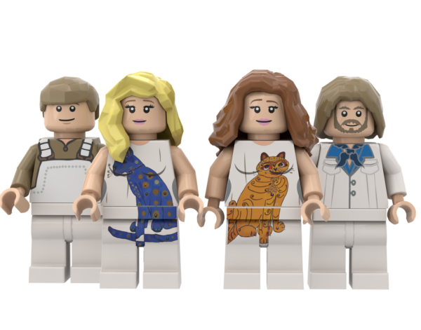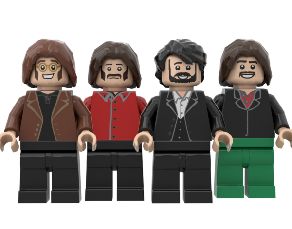 The Beatles minifigs featuring the group in their legendary Sgt. Pepper’s Lonely Hearts Club Band’s outfit : John Lennon, Ringo Starr, Paul McCartney & George Harrison.