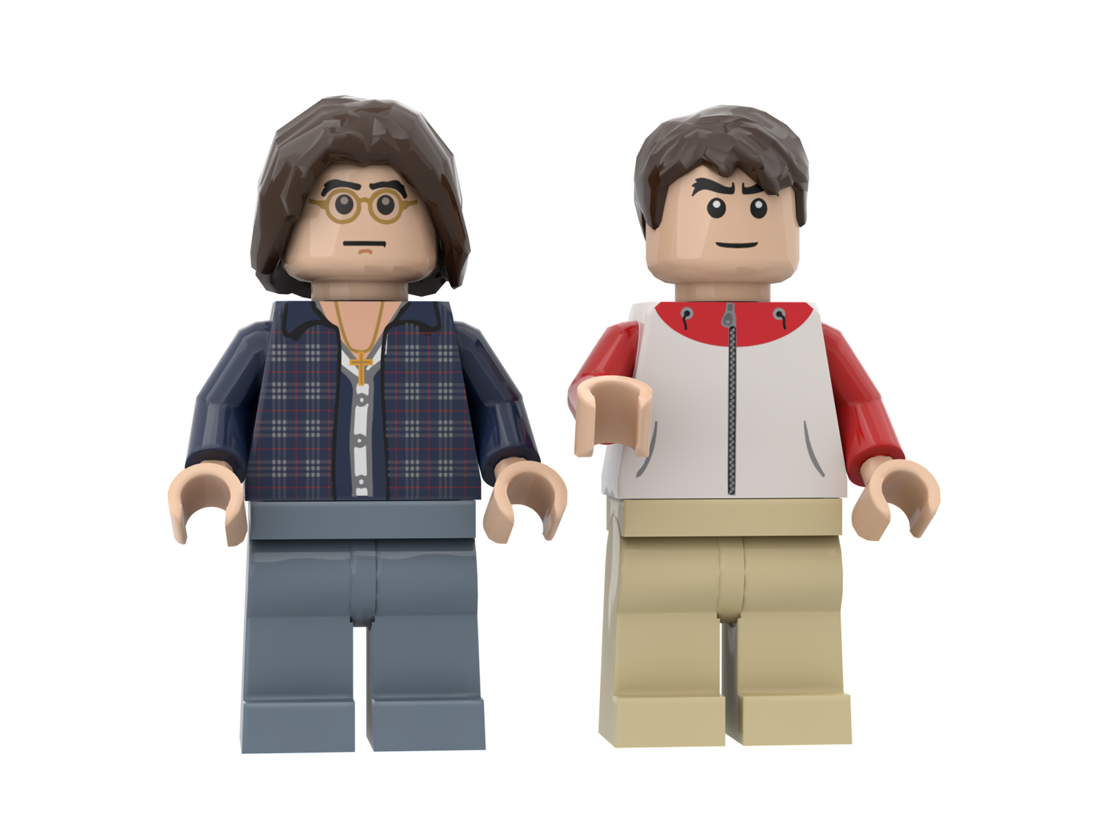 Oasis minifigs featuring the famous Gallagher brothers with their stage outfit from their homecoming gig in Manchester – Main Road in 1995.