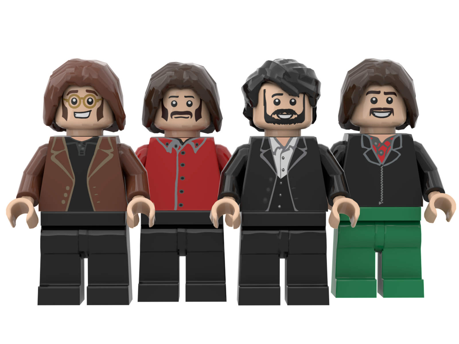 The Beatles minifigs featuring the group during their last performance ever on the rooftop for the Let It Be album.